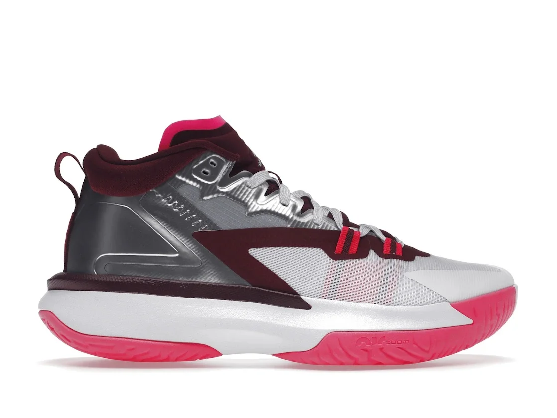 Jordan athlete Zion Williamson paid homage to his hometown of Marion, South Carolina with the Jordan 1 Zion Marion. The Jordan Zion 1 Marion features a white mesh upper with metallic silver and Dark Beetroot overlays. A Hyper Pink outsole with aggressive traction to improve court grip gears this signature model for the court. The Jordan Zion 1 Marion released in May of 2021 and retailed for $120. - Style DA3130-100/DA3129-100 - Colorway White/Hyper Pink-Dark Beetroot-Metallic Silver - Retail Price 120 - Release Date 2021-05-26 - Featured false - Product Line Air Jordan Zion