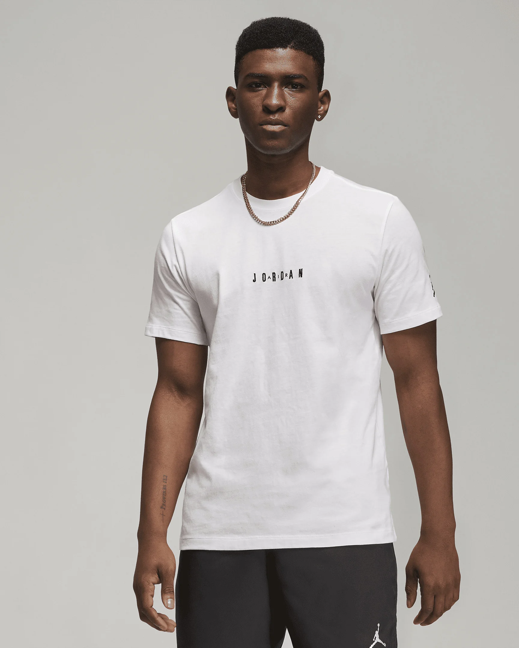 This all-cotton Jordan tee features a minimal, embroidered graphic across the chest. A relaxed fit and monochromatic look make it an easy choice. Product Details - Jordan Standard fit - Ribbed collar - Embroidered graphic - 100% cotton - Machine wash - Imported - Shown: White/Black/Black - Style: DM3182-100 SIZE & FIT Model is wearing size M and is 6′2″189cm Standard fit: easy and traditional