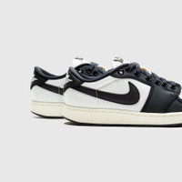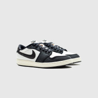 - DX4981 100 - Black/White-Black - Jordan Brand brings us a low-cut update to the classic AJKO - White & Black duck canvas upper - White nylon tongue with classic "NIKE" logo tongue tag - Black leather swoosh - Black leather heel cap with embroidered Jordan "AJKO WINGS " logo - Sail rubber midsole - Black rubber outsole - Double-layered cloth laces - Extra pair of laces