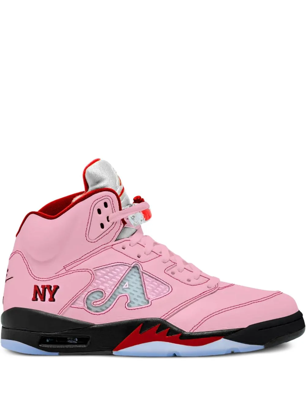 Air Jordan 5 sneakers Highlights - Pink - Panelled design - Lace-up fastening - Contrasting stitching - Round toe - These styles are supplied by a premium and authenticated sneaker marketplace. stocking only the most sought-after footwear, they source and curate some of the most hard to find sneakers from around the world. Imported Composition Sole: Rubber 100% Outer: Fabric 100% Lining: Fabric 100%