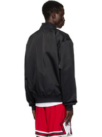 Water-repellent polyester taffeta bomber jacket. · Rib knit stand collar, hem, and cuffs · Press-stud closure · Logo graphic embroidered at chest and cuff · Welt pockets · Dropped shoulders · Full satin lining Supplier color: Black/White