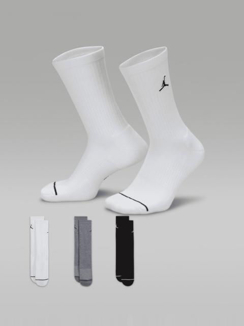 Your go-to, everyday, soft and reliable socks. Sweat-wicking technology keeps your feet cool and dry while a snug arch band feels supportive. Benefits - Cushioning under the forefoot and heel helps soften the impact of your workout. - Band around the arch feels snug and supportive. - Breathable knit pattern on top adds ventilation. - Reinforced heel and toe are made to last. Product Details - 96% polyester/3% polyurethane/1% nylon - Jumpman logo - Machine wash - Imported - Shown: Black/White - Style: DX9632-010