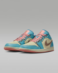 The Air Jordan 1 Low SE from the "Somos Eternos" collection celebrates life through colors and textures that honor the vibrant tradition of Dia de Muertos. The genuine leather upper wears away over time to reveal another color, symbolizing transformation and the natural cycle of life. Stone, copper and turquoise tones evoke the connection between earth and sky, while the encapsulated Air-Sole unit and solid rubber outsole deliver lightweight comfort and durable traction with every step. Benefits - Encapsulated Air-Sole unit provides lightweight cushioning. - Genuine leather in the upper offers durability and a premium look. - Solid rubber outsole enhances traction on a variety of surfaces. Product Details - Shown: Denim Turquoise/Red Stardust/Light Stone/Smokey Blue - Style: IM8120-464