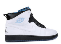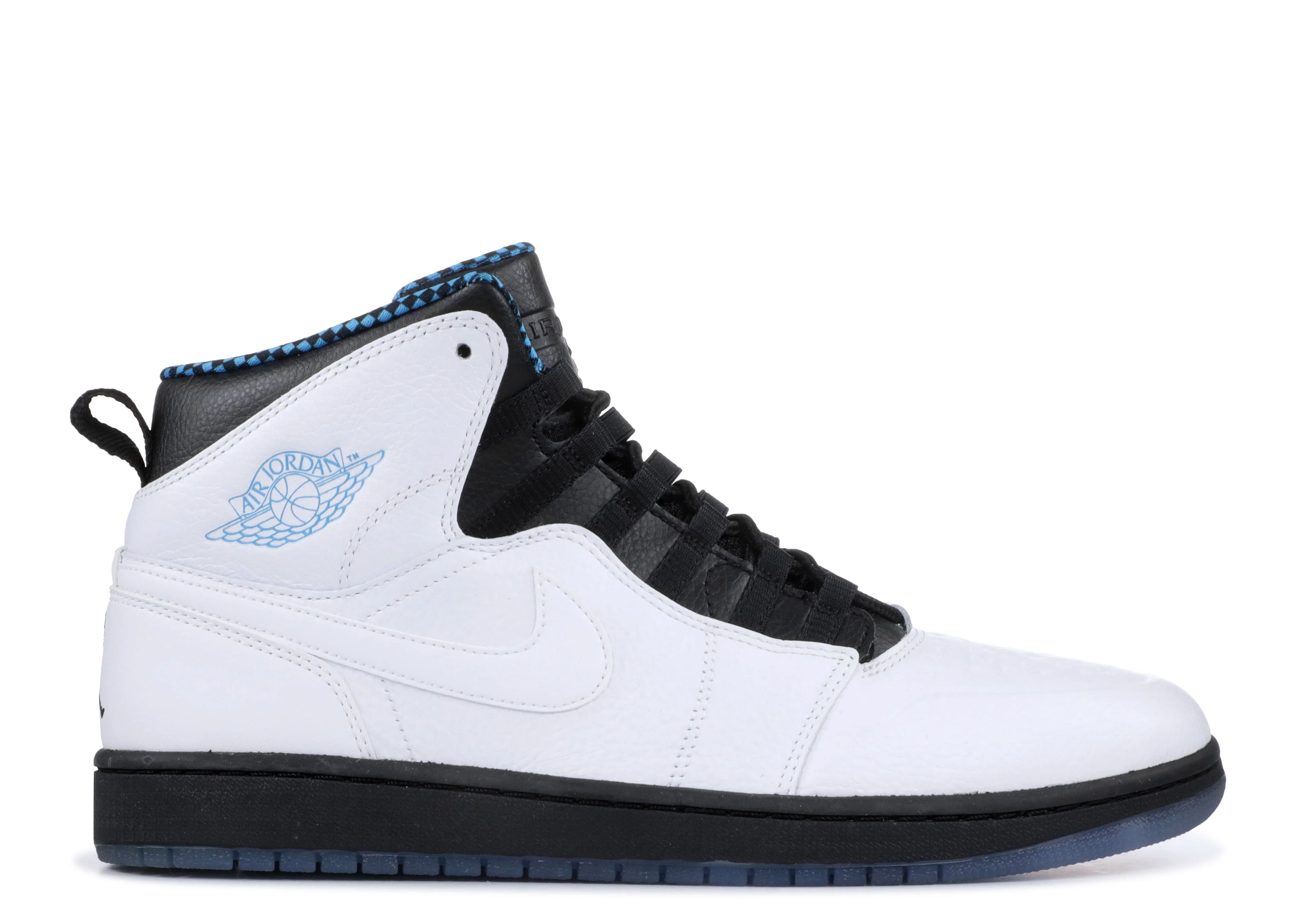 One of several retro colorways to release in 2014, the Air Jordan 1 Retro '94 'Powder Blue' emerges with a familiar University of North Carolina inspiration. The white and black look is accented by Dark Powder Blue on the 'Wings' logo and lining, which features a checkered print drawn from the Air Jordan 10. The quick-lace system is also pulled from the Jodan 10, and a translucent outsole provides traction. SKU: 631733 106 Colorway: White/Black-Dark Powder Blue Release Date: 2/8/14