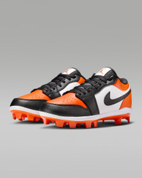 Bringing the iconic design of the Air Jordan 1 to the ballpark, the Jordan 1 Retro MCS Low has a molded outsole for traction that digs in. Its durable upper delivers a comfortable, supportive fit during games. Benefits - Synthetic leather upper provides durable comfort and support. - Foam midsole delivers lightweight cushioning around the bases. - Cleated TPU plate offers lightweight, durable traction. Product Details - Shown: Starfish/White/Black - Style: IM3480-800