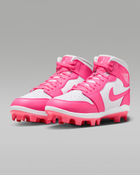 Bringing the iconic design of the Air Jordan 1 to the ballpark, the Jordan 1 Retro MCS has a molded outsole for traction that digs in, while its durable upper delivers a supportive fit. Benefits - Synthetic leather upper provides durable comfort and support. - Foam midsole delivers lightweight cushioning around the bases. - Cleated TPU plate offers lightweight, durable traction. - An Air Jordan Wings logo on the upper brings basketball details to the diamond. Product Details - Shown: White/Sunset Pulse/Digital Pink - Style: AV5354-103