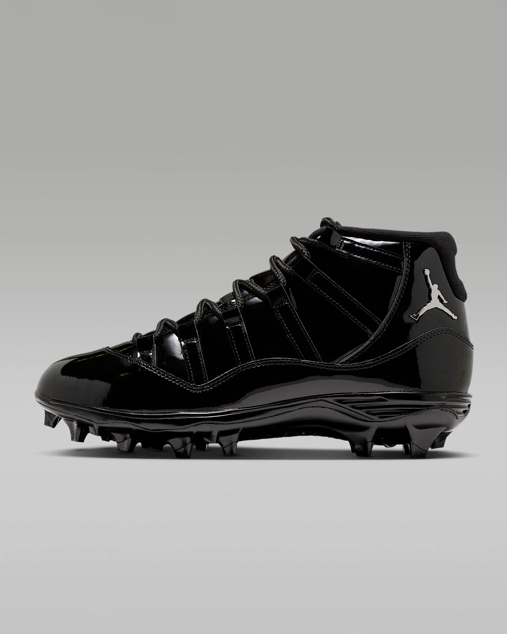 You don't have to worry about looking good in the end zone when you're wearing these Jordan 11 Mid cleats. With molded studs that deliver optimal traction for quick cuts and a durable leather upper for a supportive fit, they bring an iconic design to the field. Benefits - Snappy and responsive, Air Zoom cushioning helps provide a quick-off-the-ground sensation. - Upper takes iconic parts of the AJ11 and reimagines the silhouette for football. - Genuine leather in upper offers durability, structure and a premium look. - Cleated plate offers lightweight, durable traction. Product Details - Shown: Black/Anthracite/Metallic Silver - Style: HM7324-001