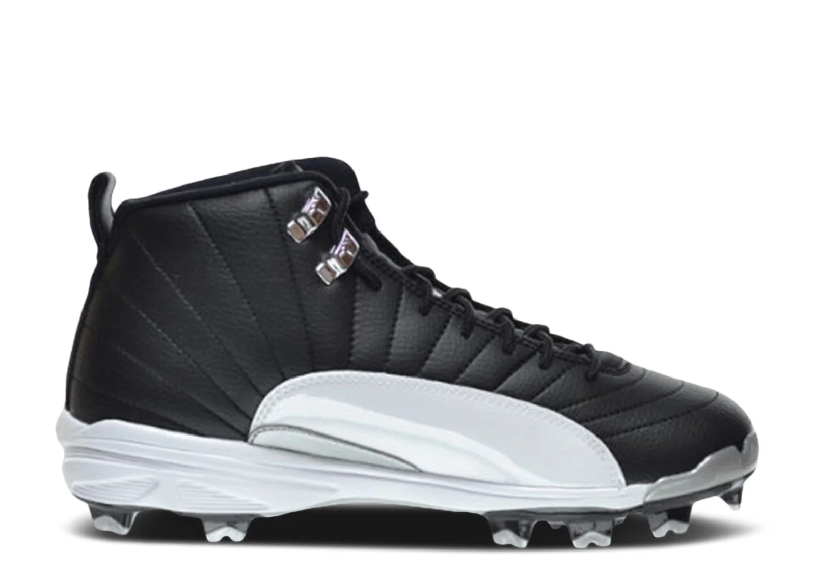 The Air Jordan 12 Retro MCS 'Playoff' takes design cues from Japan's rising sun and applies it to the upper. These baseball cleats keep the black-and-white leather theme, joined by a lightweight plastic plate and molded spikes for smooth traction on the field. SKU: 625219 001 Colorway: Black/Gym Red-White-Metallic Silver