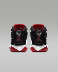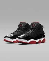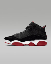 Celebrate the legendary career of "His Airness" with the Jordan 6 Rings. Incorporating key features of each shoe worn during the championship series, it has premium details and lightweight, low-profile Zoom Air cushioning that delivers a responsive feel underfoot. Benefits - Zoom Air units in the heel and forefoot provide lightweight, responsive cushioning. - Leather, synthetic leather and/or textile materials in the upper for comfort and durability. - Foam midsole for stability and lightweight cushioning. - Rubber outsole offers durability and traction. - Heel tab for easy on and off. Product Details - Shown: Black/White/Varsity Red - Style: 322992-062 SIZE & FIT Fits small; we recommend ordering a half size up