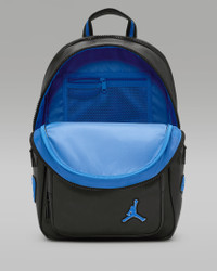 Made pebbled faux leather in a varsity jacket inspired design and featuring logo embroidery, this elevated backpack is an elevated way to carry your everyday haul. The spacious main compartment has a 2-way zip closure and has a mesh zippered pocket inside to help you keep small items from getting lost. The back compartment houses a padded tech sleeve to help protect your laptop or tablet, and zip pockets on the front provide quick and easy access to small items. Benefits - Use the bottle pockets on the sides for hands-free carry of beverages. - The shoulder straps are adjustable for comfy wear. Product Details - 17.5"H x 12"L x 6"D; Strap Length: 40" (longest), 20" (shortest) - Main Body: 100% Polyurethane; Lining: 100% Polyester; Shoulder Straps: 100% Nylon - Spot Clean - Imported - Shown: Black - Style: MA9004-KB4