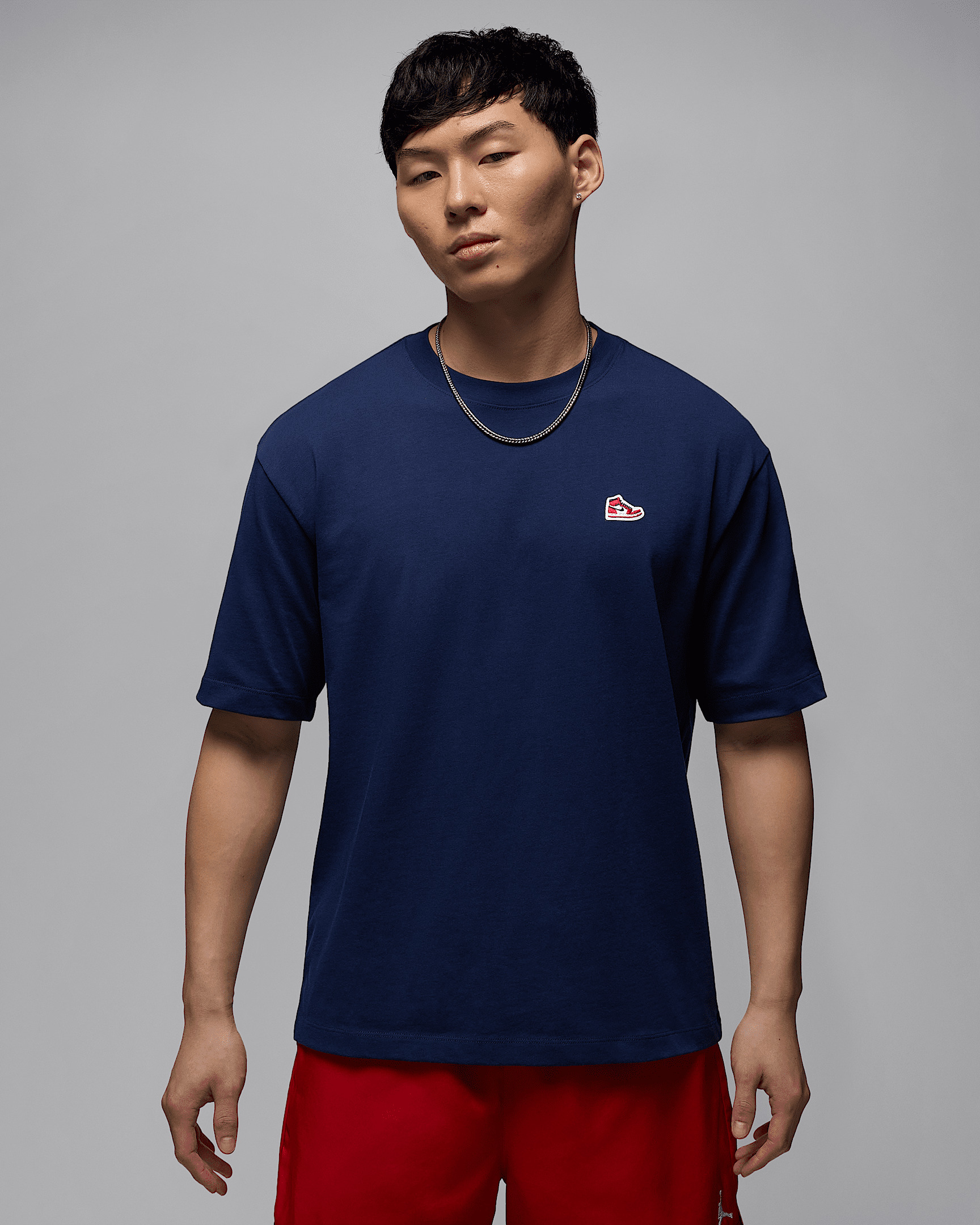 Let's cut to the chase—sometimes the AJ1 is all you need. Especially when it's sewn on a structured heavyweight cotton tee. Product Details - 100% cotton - Machine wash - Imported - Shown: Midnight Navy/White - Style: HJ2326-410 SIZE & FIT Model is wearing size M and is 5′11″180cm Standard fit: easy and traditional