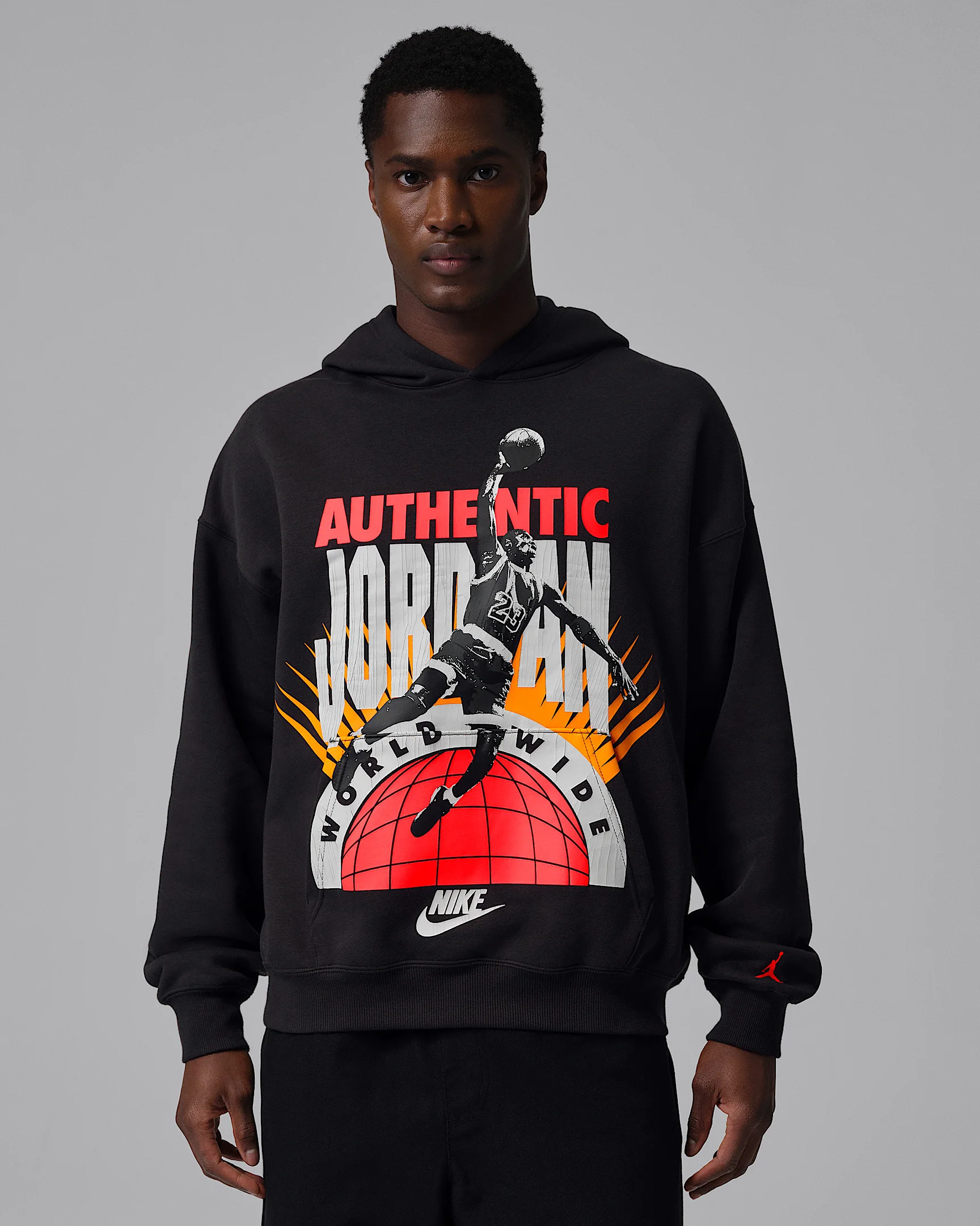 Retro-inspired graphics rep the GOAT on this soft fleece hoodie. Let 'em know you're authentic Jordan. Product Details - Body: 80% cotton/20% polyester. Hood lining: 80% cotton/20% polyester. - Machine wash - Imported - Shown: Off Noir/Infrared 23 - Style: IF1843-045 SIZE & FIT Model is wearing size M and is 6′0″183cm Oversized fit: exaggerated and spacious