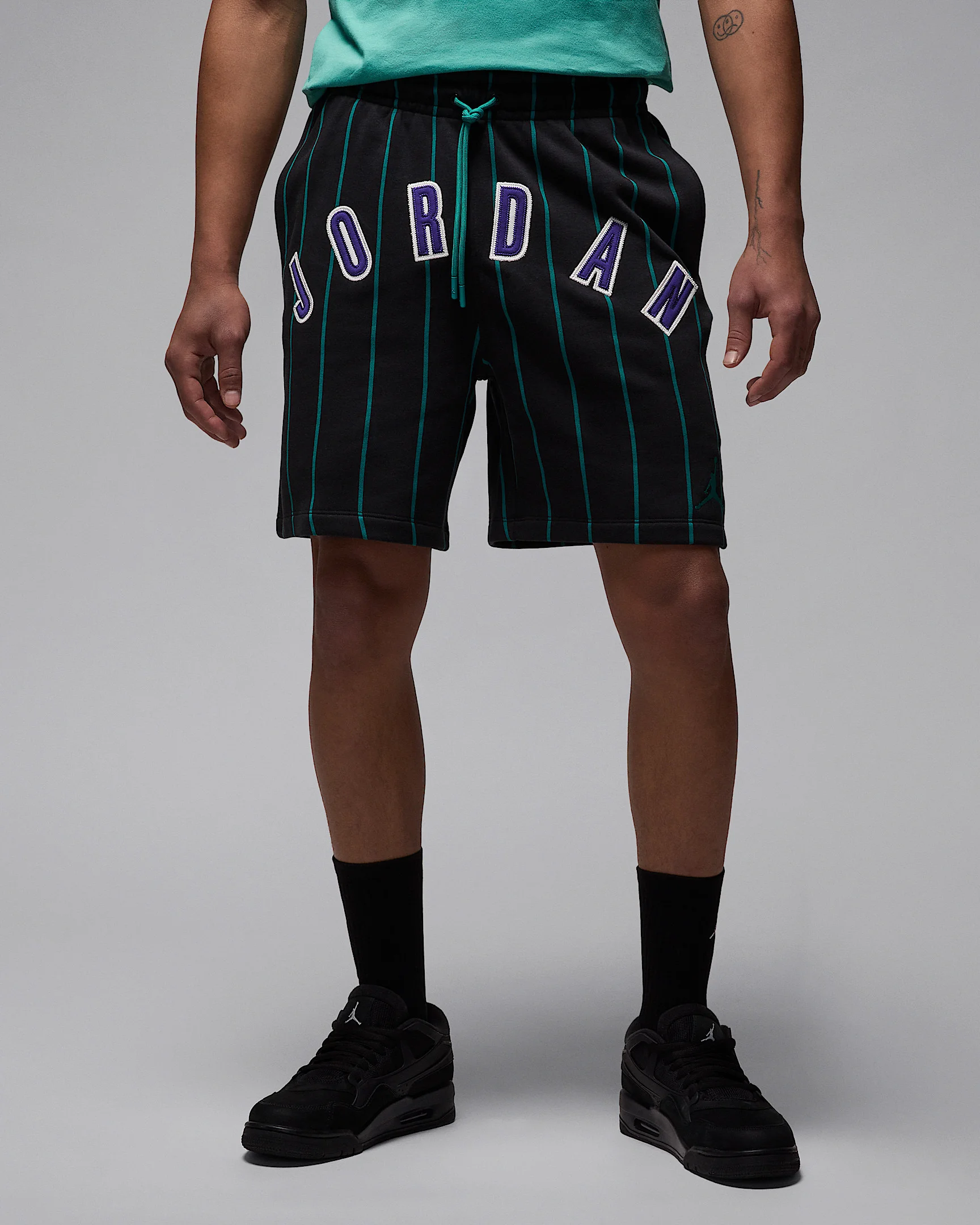 Made from fleece that's brushed soft on the inside, these relaxed shorts are ready for whatever your day holds. Baseball-inspired details nod to MJ's time on the diamond. Product Details - Side pockets - Enamel tips on drawcord - Embroidered Jumpman - Body: 80% cotton/20% polyester. Pocket bags: 100% cotton. - Machine wash - Imported - Shown: Off Noir/New Emerald - Style: IB8820-045 SIZE & FIT Model is wearing size M and is 6′0″183cm Standard fit: easy and traditional