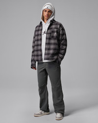 Bring the heat in the cold months with this button down long-sleeve flannel. It reps Jordan with a Jumpman on the pocket, as well as bold lettering on the back. Product Details - 100% cotton - Machine wash - Imported - Shown: Black/Sail - Style: IF1857-010 SIZE & FIT Loose fit: roomy and relaxed