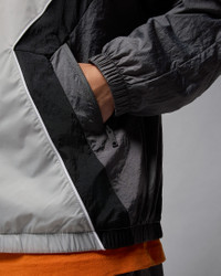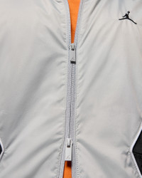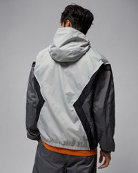 Lightweight and slick, the Draft Jacket is Jordan's take on the windbreaker. Smooth, water-repellent nylon fabric and an airy mesh lining help keep you dry and comfortable. Piping details add heritage style inspired by MJ's early warm-up looks. Benefits - Nylon shell features a water-repellent finish that helps keep you dry in wet weather. - Mesh lining helps add breathability. - Two-way zipper gives you styling options. - Zippered side pockets provide secure storage for small items. Product Details - Body: 100% nylon. Lining: 100% polyester. - Elastic cuffs and hem - Machine wash - Imported - Shown: Light Smoke Grey/Iron Grey/White/Black - Style: HF9333-077 SIZE & FIT Model is wearing size M and is 6′4″193cm Loose fit: roomy and relaxed