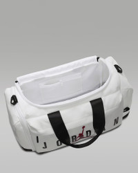 Whether you gotta haul your gear to the game or you need a spacious overnight bag, this duffel has you covered. The main compartment has a 2-way zippered closure, a drop pocket inside to help you keep smaller items in their place, and the shoe garage on the side helps to keep your things clean and organized. Benefits - The large zippered pocket on the front provides extra space to secure items you want quick and easy access to. Product Details - 10.25"H x 21.5"L x 13"D; Strap Length: 51" (longest), 31.74" (shortest) - 100% Polyester - Spot Clean - Imported - Shown: White - Style: SM0920-001