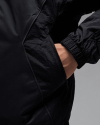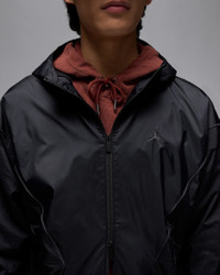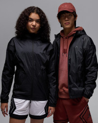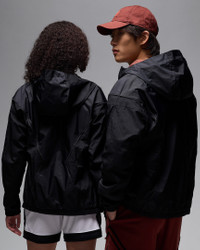 Lightweight and slick, the Draft Jacket is Jordan's take on the windbreaker. Smooth, water-repellent nylon fabric and an airy mesh lining help keep you dry and comfortable. Piping details add heritage style inspired by MJ's early warm-up looks. Benefits - Nylon shell features a water-repellent finish that helps keep you dry in wet weather. - Mesh lining helps add breathability. - Two-way zipper gives you styling options. - Zippered side pockets provide secure storage for small items. Product Details - Body: 100% nylon. Lining: 100% polyester. - Elastic cuffs and hem - Machine wash - Imported - Shown: Black/Black/Anthracite/Anthracite - Style: HF9333-010 SIZE & FIT Female model is wearing size S and is 5'9"175cm Male model is wearing size M and is 6'0"183cm Loose fit: roomy and relaxed