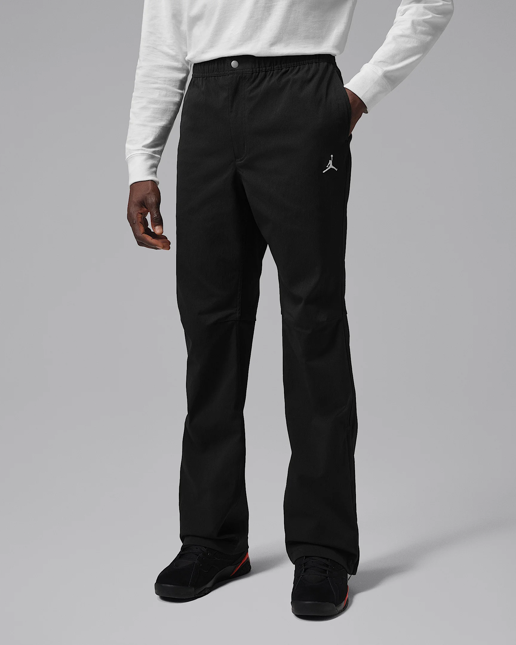 Everyday cool, these straightforward pants get it done with a classic look. They're lightweight and made with just a bit of stretch, and they've got zippers above the ankles for easier on-and-off access. Product Details - Body: 96% nylon, 4% elastic; Pocket Bags: 100% cotton - Machine wash - Imported - Shown: Black/Sail - Style: IF1818-010 SIZE & FIT Model is wearing size M and is 6′2″188cm Sm fit: sleek and tailored