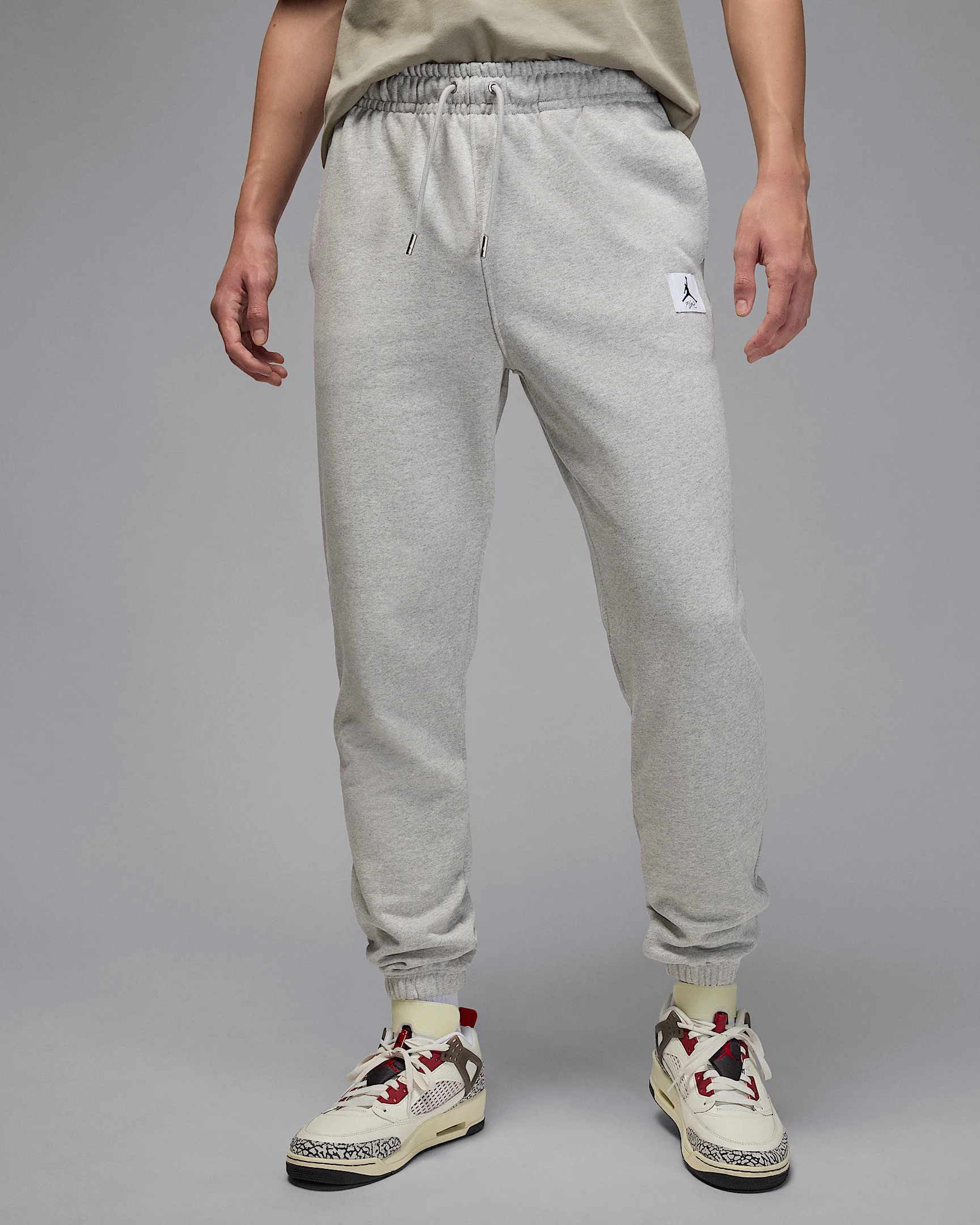 We've put a cozy spin on a Jordan must-have. Smooth on the outside and brushed soft on the inside, these midweight fleece sweats are all about comfort. Plus, an elastic waistband with drawcord makes finding your perfect fit easy. Product Details - 100% cotton - Back and side pockets - Elastic cuffs - Machine wash - Imported - Shown: Grey Heather/Black - Style: FV7251-050 SIZE & FIT Model is wearing size M and is 6′4″193cm Standard fit: easy and traditional