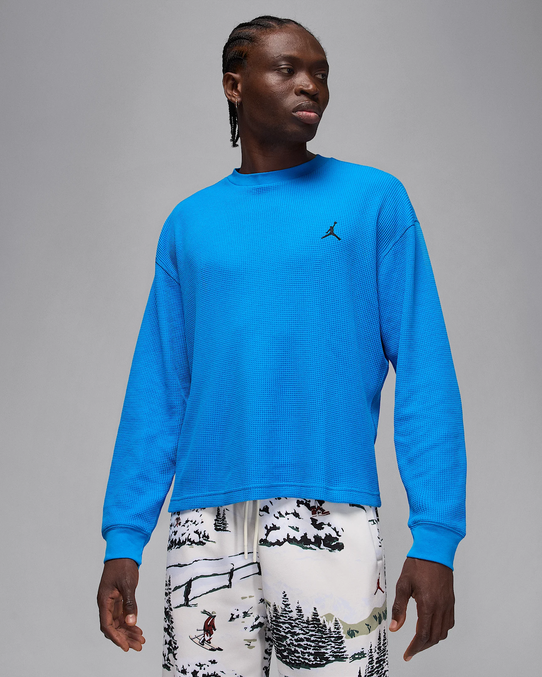Waffle-knit tops are classic essentials for chilly weather. Ready to rock solo or layer up, this one will see you through the season with subtle Jordan style. Product Details - 75% Cotton, 25% Polyester - Machine wash - Imported - Shown: Light Photo Blue/Black - Style: IM6255-435 SIZE & FIT Model is wearing size M and is 6′2″188cm Standard fit: easy and traditional