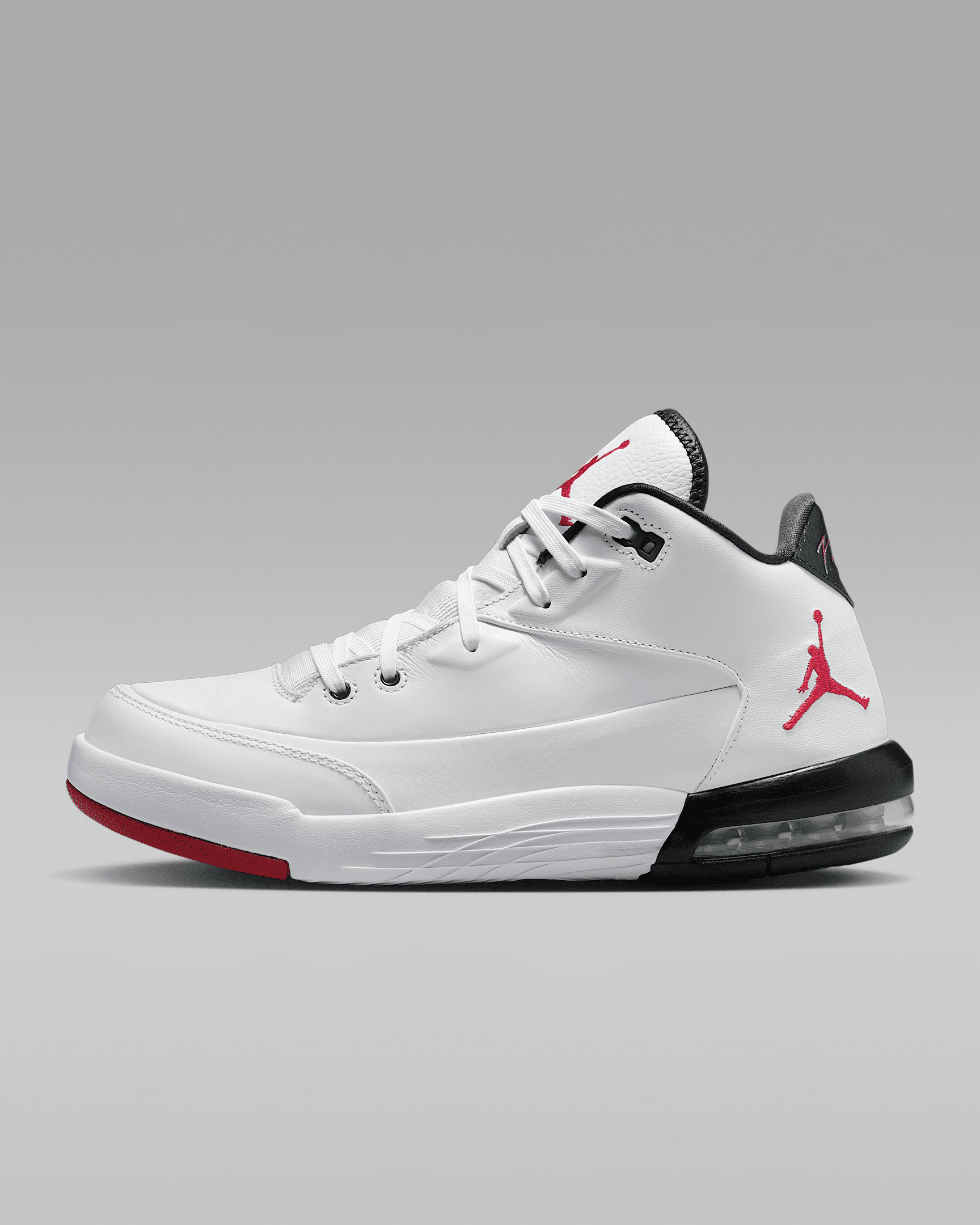 With style pulled straight from the AJ3, these sneakers reimagine an icon for today's modern world. Smooth, premium leather makes for a quality feel, while an enlarged Jumpman adds a heritage look. Benefits - Real and synthetic leather in the upper add durability and structure. - Plush and comfortable, Max Air cushioning has just the right amount of support. - Foam midsole adds lightweight cushioning. - Rubber in the outsole helps provide durable traction. Product Details - Shown: White/Black/Gym Red - Style: IB3698-100