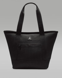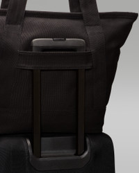 Made of durable cotton canvas, the Jumpman Tote is designed for everyday hauls, shopping trips, going to work, and carrying what you need for wherever you're going. Inside the zippered main compartment is a laptop sleeve, bottle pockets at both ends can be used to stash your favorite beverages, and the zip pocket on the back can be used to secure small items you don't want lost in the shuffle. Benefits - There is a trolley sleeve on the back of the bag that you can use to attach the tote to the telescoping handle of your luggage. Product Details - 15"H x 14"L x 8"D; Handle Drop: 11.5" - 100% Cotton - Spot Clean - Imported - Shown: Black - Style: UA9024-023