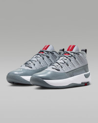 A modern mash-up made for everyday wear, the Max Aura 7 remixes two icons of style. Wavy lines near the laces nod to the AJ10, while ridges on the sides and shiny patent leather accents honor the AJ11. It's Jordan heritage reimagined. Benefits - Real leather works with sturdy textiles to add durability and structure to the upper. - Plush and comfortable, Max Air cushioning has just the right amount of support. - Foam midsole adds lightweight cushioning. - Rubber in the outsole helps give you durable traction. Product Details - Pull tab on heel - Embroidered details - Tongue label inspired by AJ11 - Shown: Wolf Grey/Cool Grey/White/Varsity Red - Style: HQ2091-002