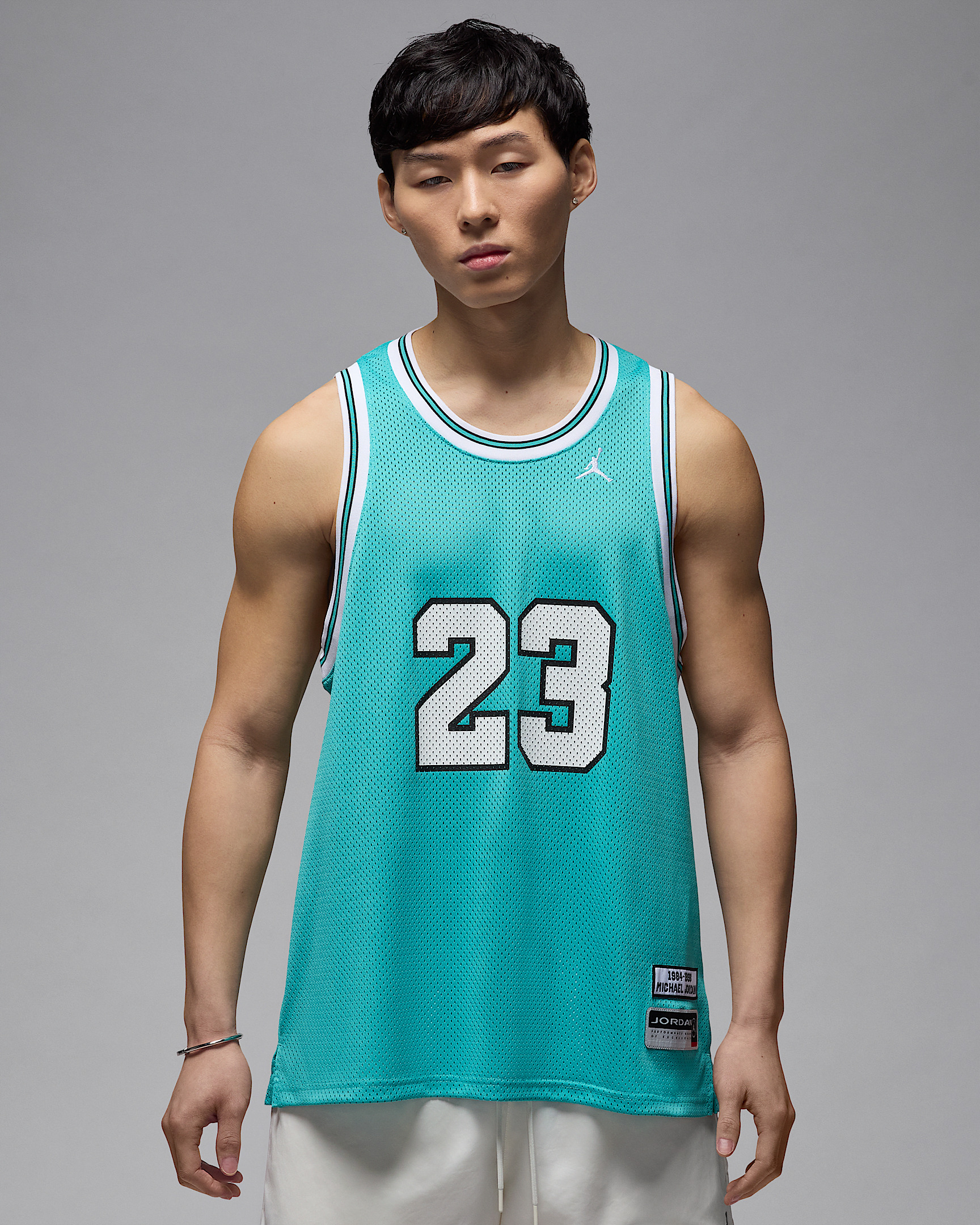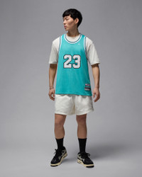This jersey is a summertime staple. Lightweight, sweat-wicking mesh keeps it breathable. Ribbing at the armholes and collar mimic what the pros wear on the court while a drop-tail hem gives you a little extra coverage in the back Product Details - 100% polyester - Machine wash - Imported - Shown: Washed Teal/White - Style: HF9375-392 SIZE & FIT Model is wearing size M and is 5′11″180cm Standard fit: easy and traditional