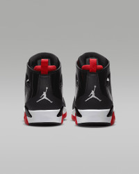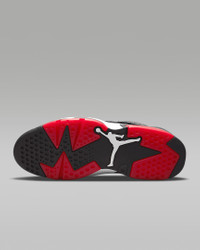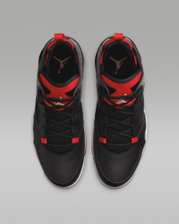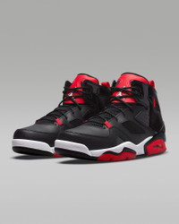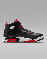 The Jordan Flight Club '91 has a design that throws back to basketball's golden age and the sneakers that reigned supreme. The Air Jordan 6 is the muse, with visible Air cushioning, cutouts in the collar, and a windowed tongue reminiscent of MJ's classic game shoe. The 91 has a structured frame of genuine and synthetic leather containing an inner bootie, providing a snug and secure fit. Benefits - Genuine and synthetic leather in the upper for durability, structure and support. - Inner knit bootie is softly lined for a comfortable fit. - PU midsole with a visible Air-Sole unit in the heel provides cushioning. - Rubber sections on the outsole provide traction. Product Details - Perforations in the sides - Heel pull - Shown: Black/University Red/White - Style: DC7329-006