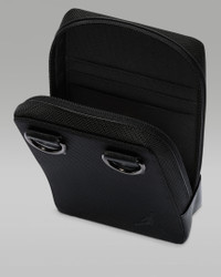 Complement your Air Jordan Retro 11's with this space-saving crossbody, made of durable fabric and featuring PVC detailing. The main compartment is just enough space for the essentials - cards, cash, phone, and keys. Inside, there is a slip pocket and card slots to help you keep organized, and the included pouch can be used to stow away your earbuds or loose change. Product Details - Bag: 7"H x 4.5"L x 1.5D". Earbud Case: 2.5" diameter. Strap Length: 52" (longest)/23" (shortest) - Main Body/Lining: 100% polyester. Front Panel/Trim: 100% polyurethane - Spot Clean - Imported - The adjustable strap is removable for versatility. - Shown: Black - Style: MA9201-023