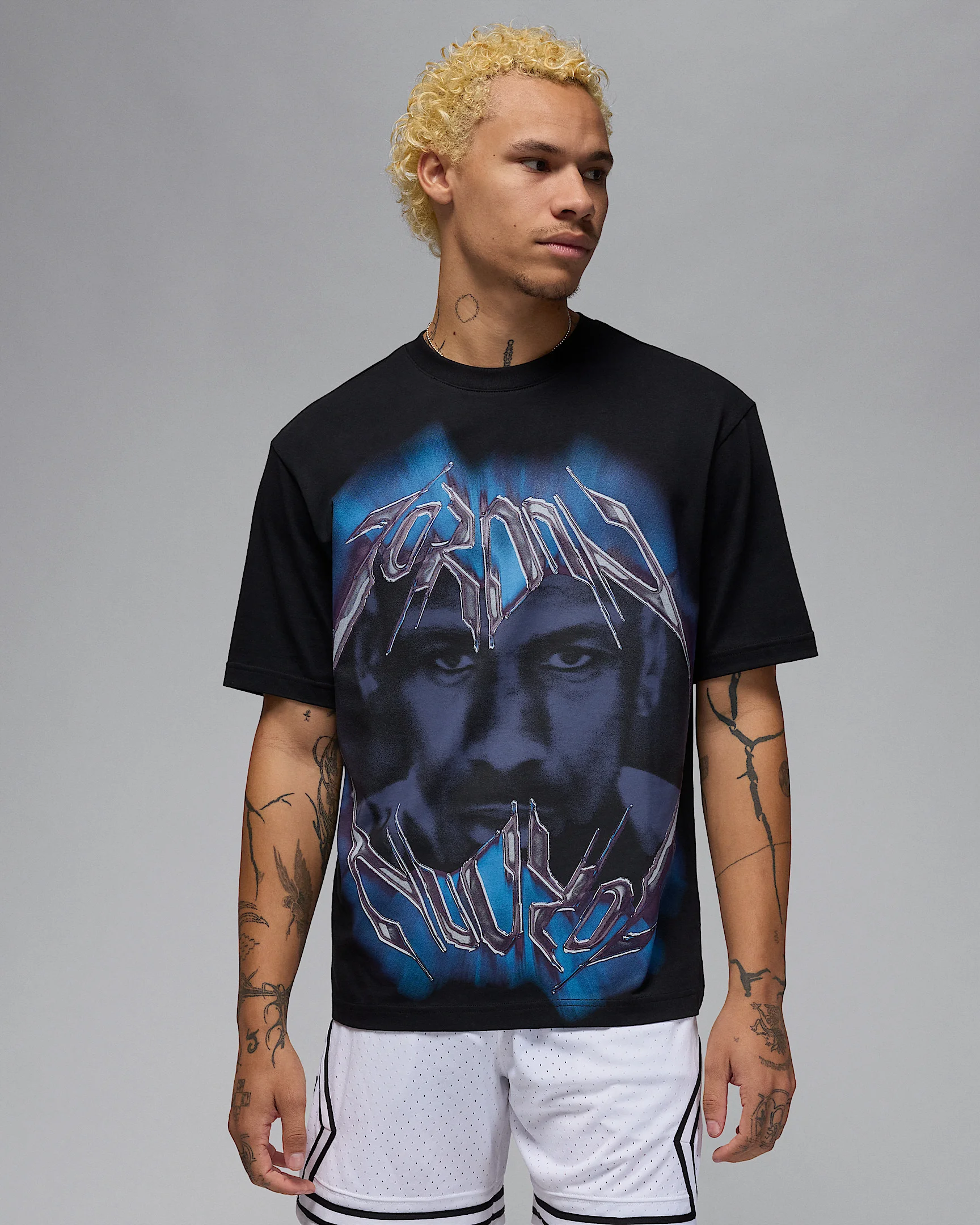 Comfortable cotton optimized with our sweat-wicking Dri-FIT tech—are we forgetting anything? Oh, that graphic. Well, it speaks for itself. Product Details - 100% cotton - Machine wash - Imported - Shown: Black/White - Style: HJ2395-010 SIZE & FIT Model is wearing size M and is 6′1″185cm Standard fit: easy and traditional
