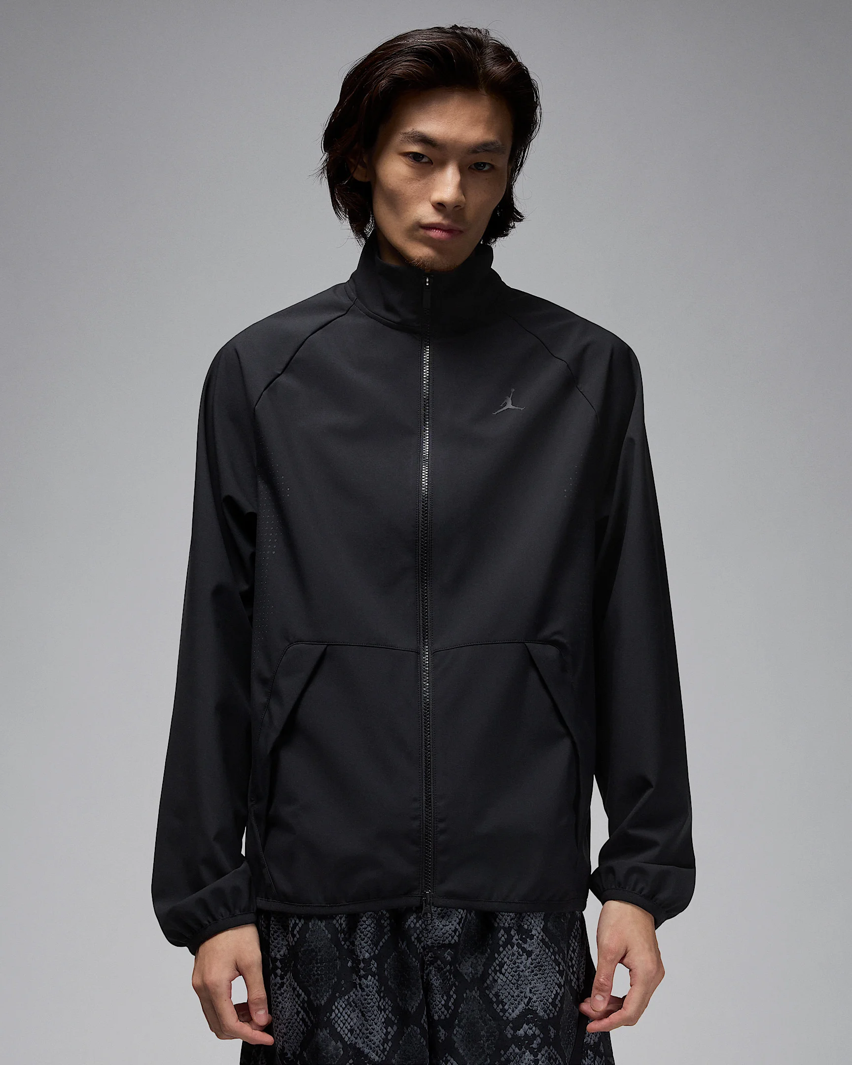 Suit up in a look inspired by MJ's iconic warm-up attire. Made from lightweight, water-repellent woven fabric, this easy-fitting jacket helps you stay dry and comfortable while channeling that classic pre-game look. Benefits - Smooth woven fabric is lightweight, durable and features a water-repellent finish to help keep you dry in wet weather. - Two-way zipper gives you styling options. - Front pockets with snap-button closures help provide secure storage. Product Details - 100% polyester - Elastic cuffs and hem - Machine wash - Imported - Shown: Black/Dark Shadow - Style: HF9885-010 SIZE & FIT Model is wearing size M and is 6′1″185cm Standard fit: easy and traditional