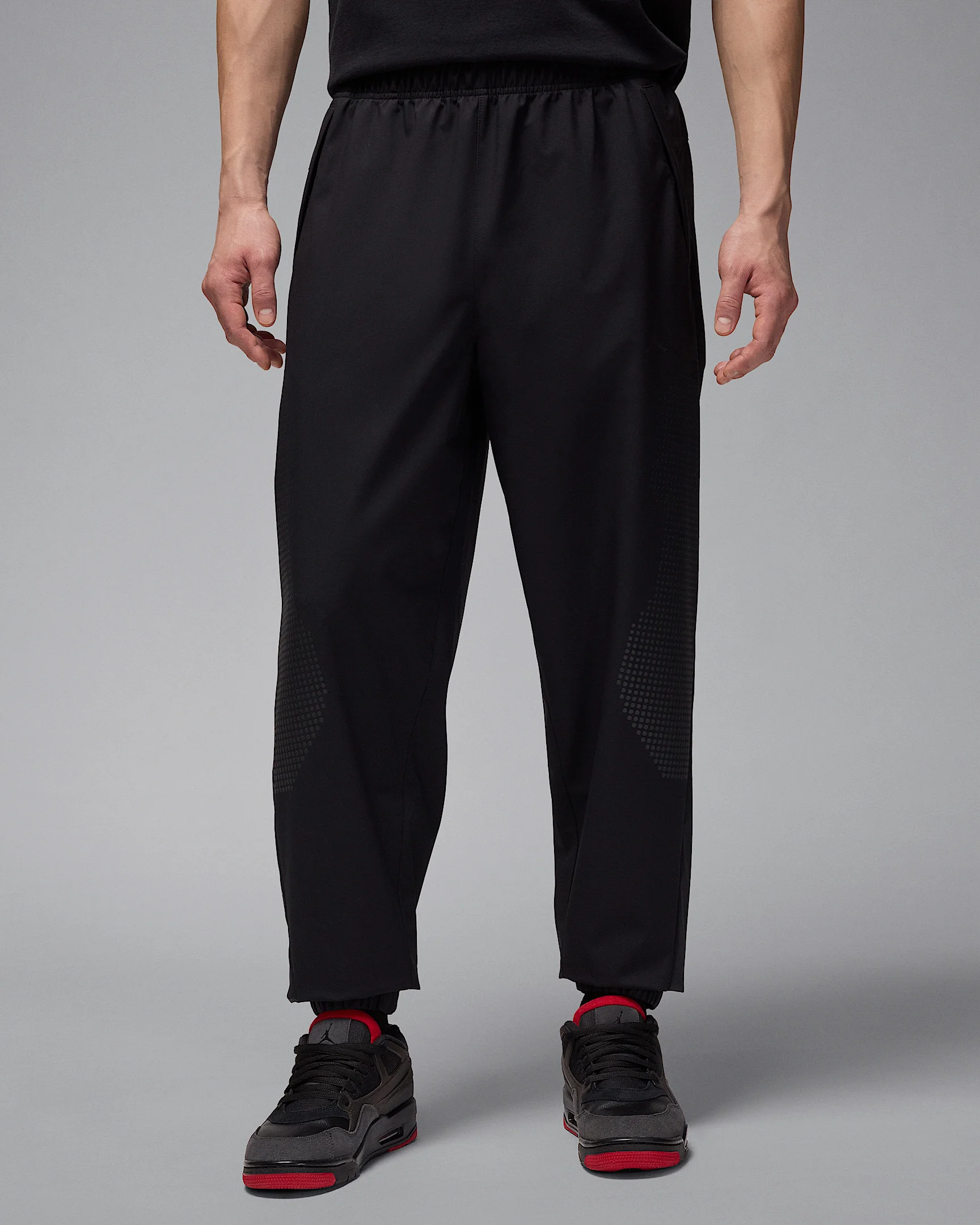 Suit up in a look inspired by MJ's iconic warm-up attire. Made from lightweight, water-repellent woven fabric, these easy-fitting pants help you stay dry and comfortable while channeling that classic pre-game look. Benefits - Smooth woven fabric is lightweight, durable and features a water-repellent finish to help keep you dry in wet weather. - Elastic waistband with drawcord helps you dial in your perfect fit. - Side pockets with snap-button closures help provide secure storage. Product Details - 100% polyester - Elastic cuffs - Machine wash - Imported - Shown: Black/Dark Shadow - Style: HF9890-010 SIZE & FIT Model is wearing size M and is 6′2″188cm Standard fit: easy and traditional