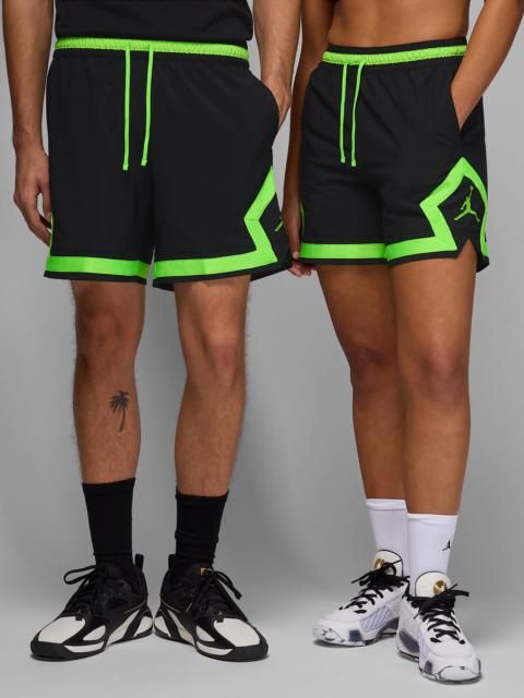 Defense, offense or rest days, our Diamond shorts can handle it all. With a hem that hits at the mid-thigh, they allow you to move freely on the court, in the gym or when kicking it with friends. Lightweight stretch-woven fabric uses our sweat-wicking technology to help you stay cool, comfortable and focused on your next move. Benefits - Nike Dri-FIT technology moves sweat away from your skin for quicker evaporation, helping you stay dry and comfortable. - Stretch-woven fabric is lightweight and flexes for ease of movement. Product Details - Body: 88% polyester/12% spandex. Pocket bags: 100% polyester. - Side pockets - Machine wash - Imported - Shown: Black/Electric Green/Electric Green - Style: FQ2989-014 SIZE & FIT Model is wearing size M and is 6′2″188cm Standard fit: easy and traditional