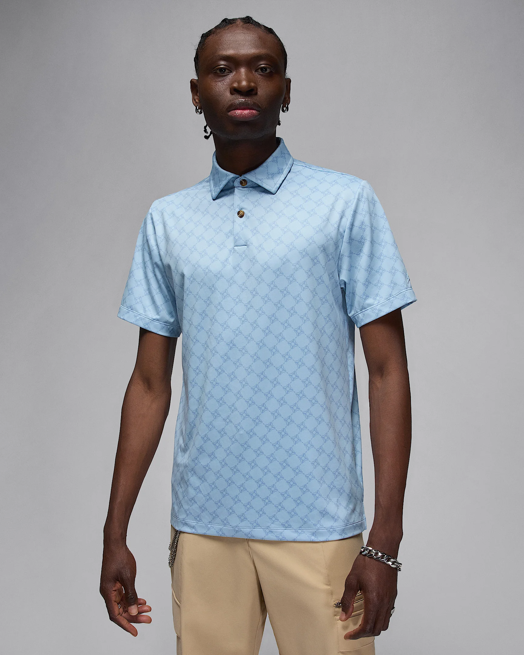This polo is made for the links. Its stretchy knit fabric helps you stay fresh through all 18 holes. And the look? It's Jordan style through and through. Benefits - Stretchy knit fabric flexes with you for ease of movement. - Drop-tail hem provides extra coverage in the back, perfect for bending and stretching with your shirt tucked in. Product Details - 86% polyester/14% spandex - Machine Wash - Imported - Shown: Light Armory Blue/Light Armory Blue - Style: HV1155-440 SIZE & FIT Model is wearing size M and is 6′2″188cm Standard fit: easy and traditional