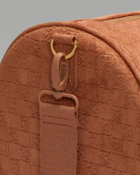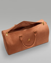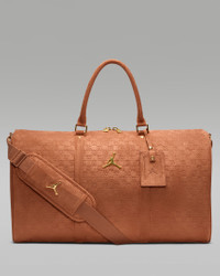 Travel like a baller with this fashionable duffel, made of durable, soft, faux suede and finished with an allover monogram pattern. The spacious main compartment has a zippered pocket inside to help you keep your smaller essentials from getting lost in the shuffle, while the handles and adjustable, removable strap provide versatile wear and carry options. Product Details - 12"H x 21.5"L x 9.5"D. Handle Drop: 7". Strap Length: 51" (longest), 31.74" (shortest) - Main Body: 100% polyurethane. Lining: 100% polyester - Spot Clean - Imported - Shown: Cognac - Style: LM9205-X6X