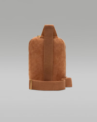 This sleek sling bag is made of durable faux suede finished with an allover monogram pattern that perfectly complements your Jordans. The main compartment has zip pockets inside to help you stay organized and the pockets on the front provide you with quick and easy access to your cards, phone, or other smaller items. Finish with an adjustable strap for crossbody or over-the-shoulder wear and you get a bag that's great for everyday wear. Product Details - 11"H x 7.5"L x 2.25"D. Strap Length: 52" (longest) - Main Body: 100% polyurethane. Lining: 100% polyester - Spot Clean - Imported - Shown: Cognac - Style: MA9208-X6X
