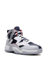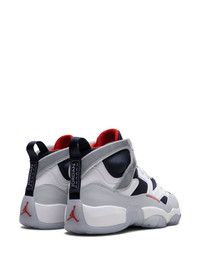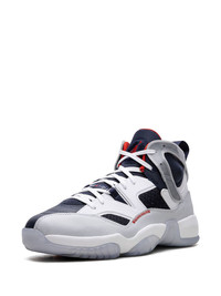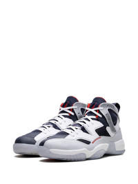 Jumpman Two Trey "Olympic" sneakers The latest colourway of Jordan's Jumpman Two Trey sneakers draws inspiration from the 2000's Air Jordan 6 Olympic. Crafted from smooth leather and mesh, it boasts a mashup design merging elements from the Air Jordan 6, 7, 8, 11, 12, 13 and 14. This iteration features a navy-blue base with grey and white overlays, as red accents complete the Olympic look. The iconic Jumpman logo lands on the tongue and icy translucent sole, whilst pull-tabs at the heel reference Michael Jordan's six NBA championships. Highlights - White/navy blue/scarlet - Leather - Mesh panelling - Signature jumpman motif - Colour-block panelled design - Round toe - Front lace-up fastening - Logo pull-tab at the heel - Chunky translucent rubber sole - These styles are supplied by a premium sneaker marketplace. stocking only the most sought-after footwear, they source and curate some of the most hard to find sneakers from around the world. Imported Composition Leather 100%