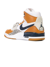 x Just Don Air Jordan Legacy 312 NRG sneakers Don C joined forces with Jordan Brand once again to create his very own sneaker silhouette in 2018. Dubbed the Jordan 312 Legacy, the shoe is predominantly a hybrid of the Air Jordan 1 and Air Jordan 3 but also adds two slightly obscure late 1980s Nike basketball models into the mix. The midfoot elephant print panelling is a reference to the Air Force STS, and the velcro strap is taken from the Air Alpha Force Low. For this rendition, Don C also referenced a fifth classic Nike sneaker, the Air Trainer III in its signature “Medicine Ball” colourway. The Jordan Legacy 312 “Ginger” pays homage to the Bo Jackson cross trainer by replicating its white, brown, and navy colours. Imported Composition Calf Leather 100% SIZE & FIT Measurement Sole height 0.98 in(2.5 cm) HEIGHT 4.33 in(11 cm) HEEL 1.57 in(4 cm) CIRCUMFERENCE 11.02 in(28 cm)