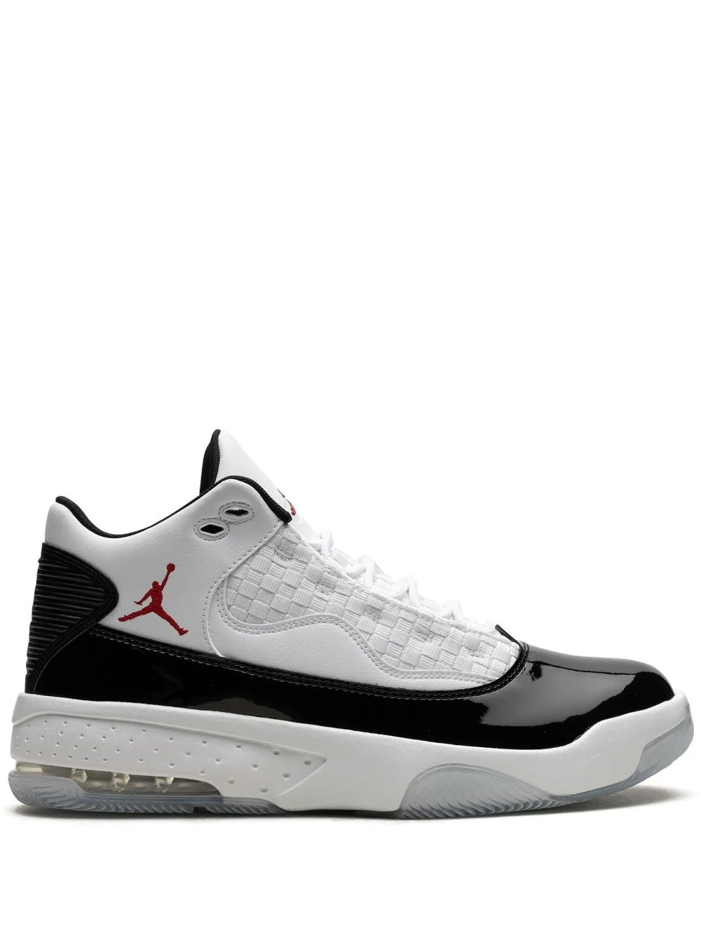 Max Aura 2 "Gym Red" sneakers The Jordan Max Aura 2 is inspired by the brand's rich legacy of performance basketball. This pair arrives in a black, white and red colour scheme, highlighted with a signature Jumpman motif on the sides, and is completed by a rubber sole with a visible Max Air unit that supplies lightweight impact cushioning and a comfortable walk. Highlights - White/black/red - Leather - Panelled design - Signature jumpman motif - Branded heel counter - Round toe - Front lace-up fastening - Logo-embossed tongue - Signature exposed air unit - Flat rubber sole - These styles are supplied by a premium sneaker marketplace. stocking only the most sought-after footwear, they source and curate some of the most hard to find sneakers from around the world. Imported Composition Leather 100%