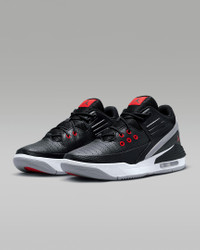 When you need a shoe that's ready 24/7, it's gotta be the Max Aura 5. Inspired by the AJ3, this pair of kicks puts a modern spin on the classic. They're made of durable leather and textiles that sit atop a heel of Nike Air cushioning so you can walk, run or skate all day and still have fresh-feeling soles. Benefits - Nike Air-Sole units provide lightweight cushioning. - Rubber outsole adds plenty of everyday traction. - Sturdy plastic around the heel adds support. Product Details - Jumpman label on tongue - Eyelets reference the AJ3 - Sturdy plastic on heel inspired by AJ3 mold - Shown: Black/White/Cement Grey/University Red - Style: DZ4353-061 SIZE & FIT Fits small; we recommend ordering a half size up