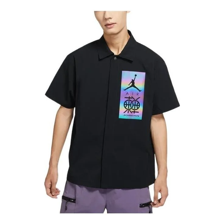 Men's Air Jordan Dongdan Laser Pattern Pullover Round Neck Short Sleeve Black T-Shirt DV6283-010