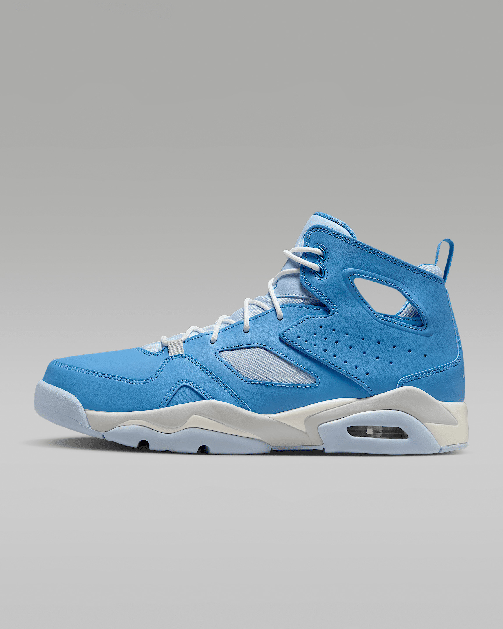 The Jordan Flight Club '91 has a design that throws back to basketball's golden age and the sneakers that reigned supreme. The Air Jordan 6 is the muse, with visible Air cushioning, cutouts in the collar, and a windowed tongue reminiscent of MJ's classic game shoe. The 91 has a structured frame of genuine and synthetic leather containing an inner bootie, providing a snug and secure fit. Benefits - Genuine and synthetic leather in the upper for durability, structure and support. - Inner knit bootie is softly lined for a comfortable fit. - PU midsole with a visible Air-Sole unit in the heel provides cushioning. - Rubber sections on the outsole provide traction. Product Details - Perforations in the sides - Heel pull - Shown: Legend Blue/Pure Platinum/Sail/Hydrogen Blue - Style: DC7329-400