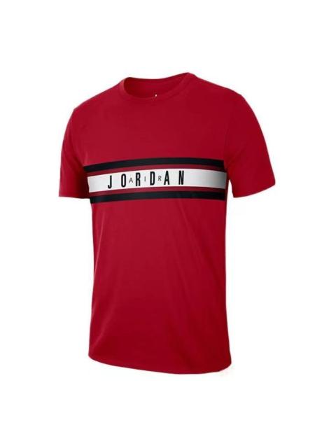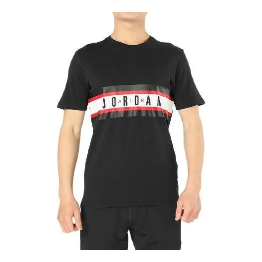 Men's Air Jordan Splicing Alphabet Logo Printing Casual Short Sleeve Black T-Shirt 939619-010