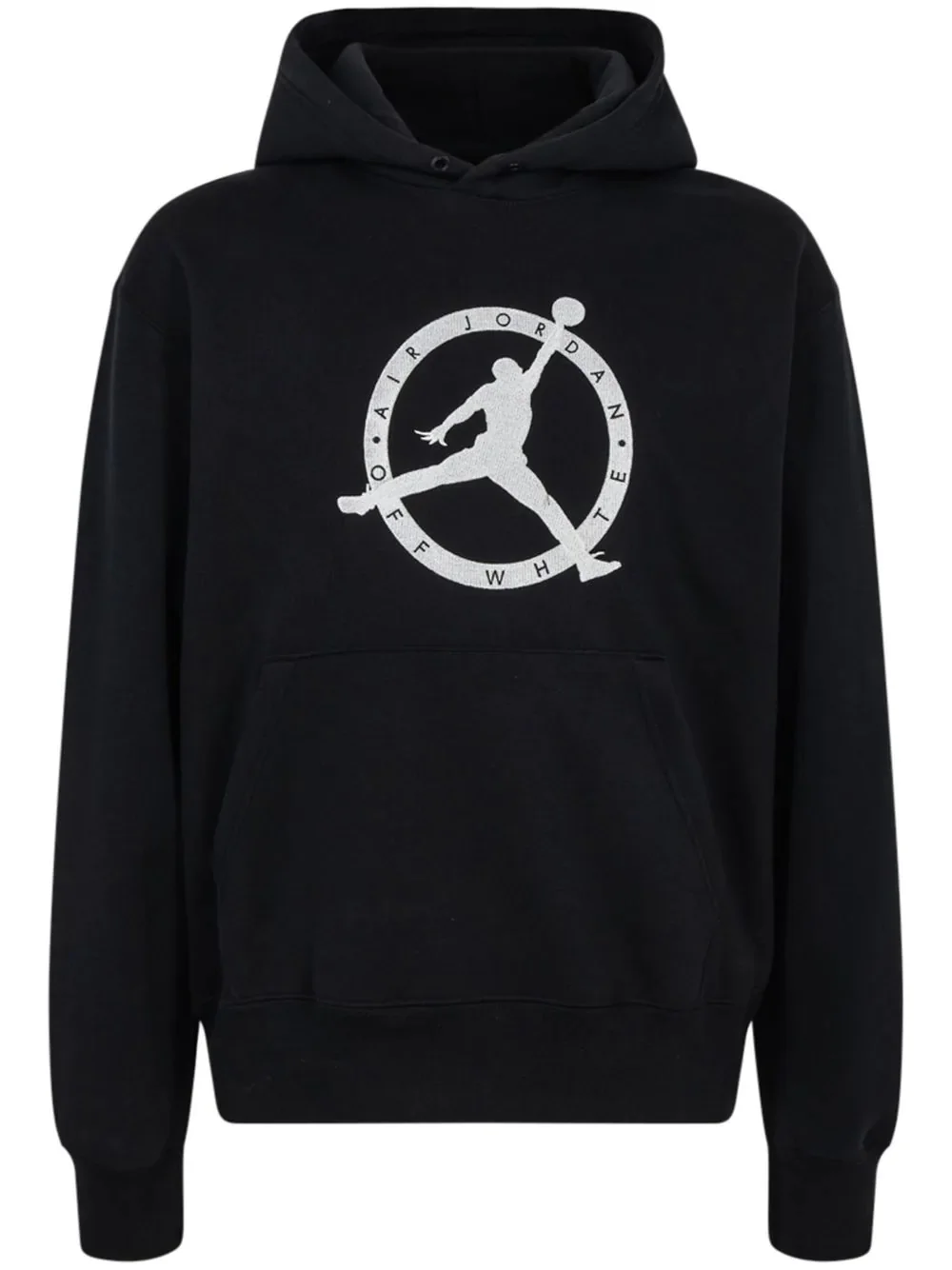 x Off-White hoodie The Off-White x Air Jordan hoodie “Black” is a hooded sweatshirt that was released alongside a collection of apparel that accompanied the brand’s Air Jordan 2 Low collaboration - the final sneaker release of Virgil Abloh’s career. This co-designed hoodie features dual Off-White and Jordan Brand branding on the chest while similar branding representing the two popular streetwear brands is found on the back. Imported Composition Cotton 100%