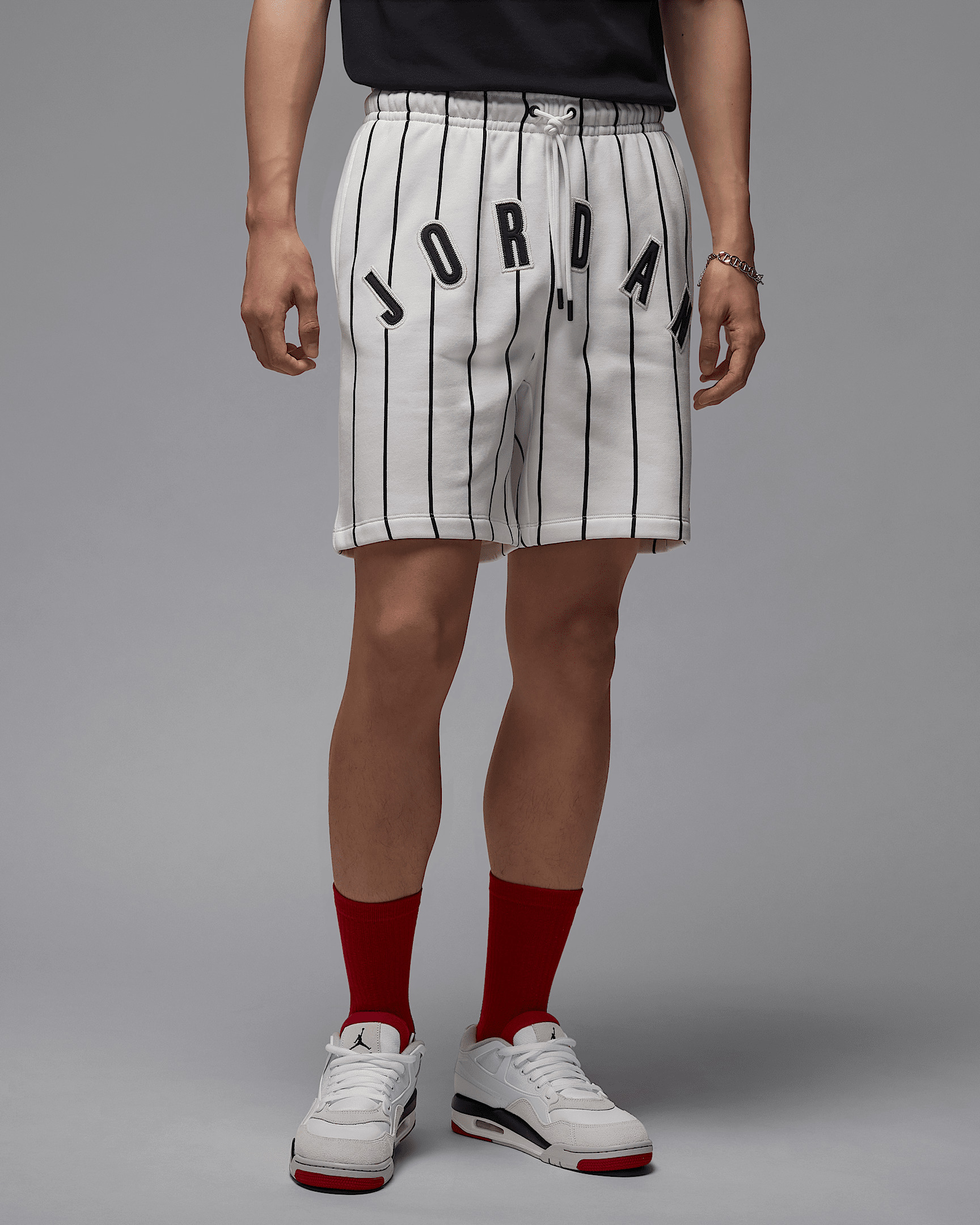 Made from fleece that's brushed soft on the inside, these relaxed shorts are ready for whatever your day holds. Baseball-inspired details nod to MJ's time on the diamond. Product Details - Side pockets - Enamel tips on drawcord - Embroidered Jumpman - Body: 80% cotton/20% polyester. Pocket bags: 100% cotton. - Machine wash - Imported - Shown: Summit White/Off Noir - Style: IB8820-121 SIZE & FIT Model is wearing size M and is 6′4″193cm Standard fit: easy and traditional
