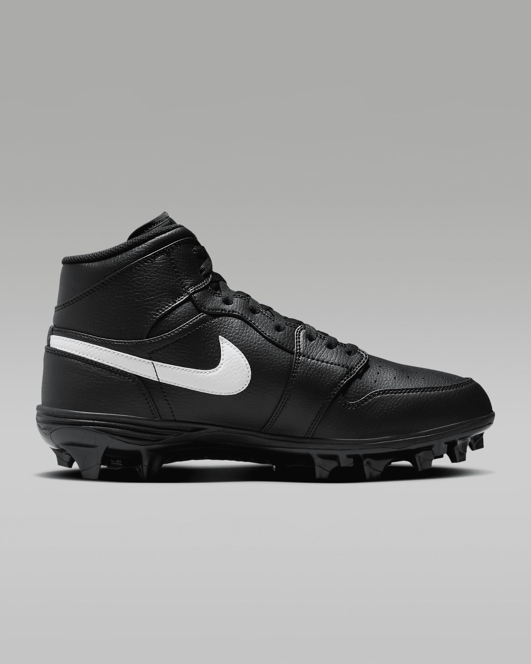 Engineered for speed, the Jordan 1 Mid TD offers a new degree of agility and quickness. Its wide stud placements help you cut faster than ever before. And the durable design is backed by synthetic leather details in the upper that help resist abrasion. Benefits - Upper takes the best parts of the AJ1 and reimagines the silhouette for a football cleat. - Wide stud placement helps you make quick cuts on the field. - External midsole provides extra comfort. Product Details - Shown: Black/Black/White - Style: FJ6805-001