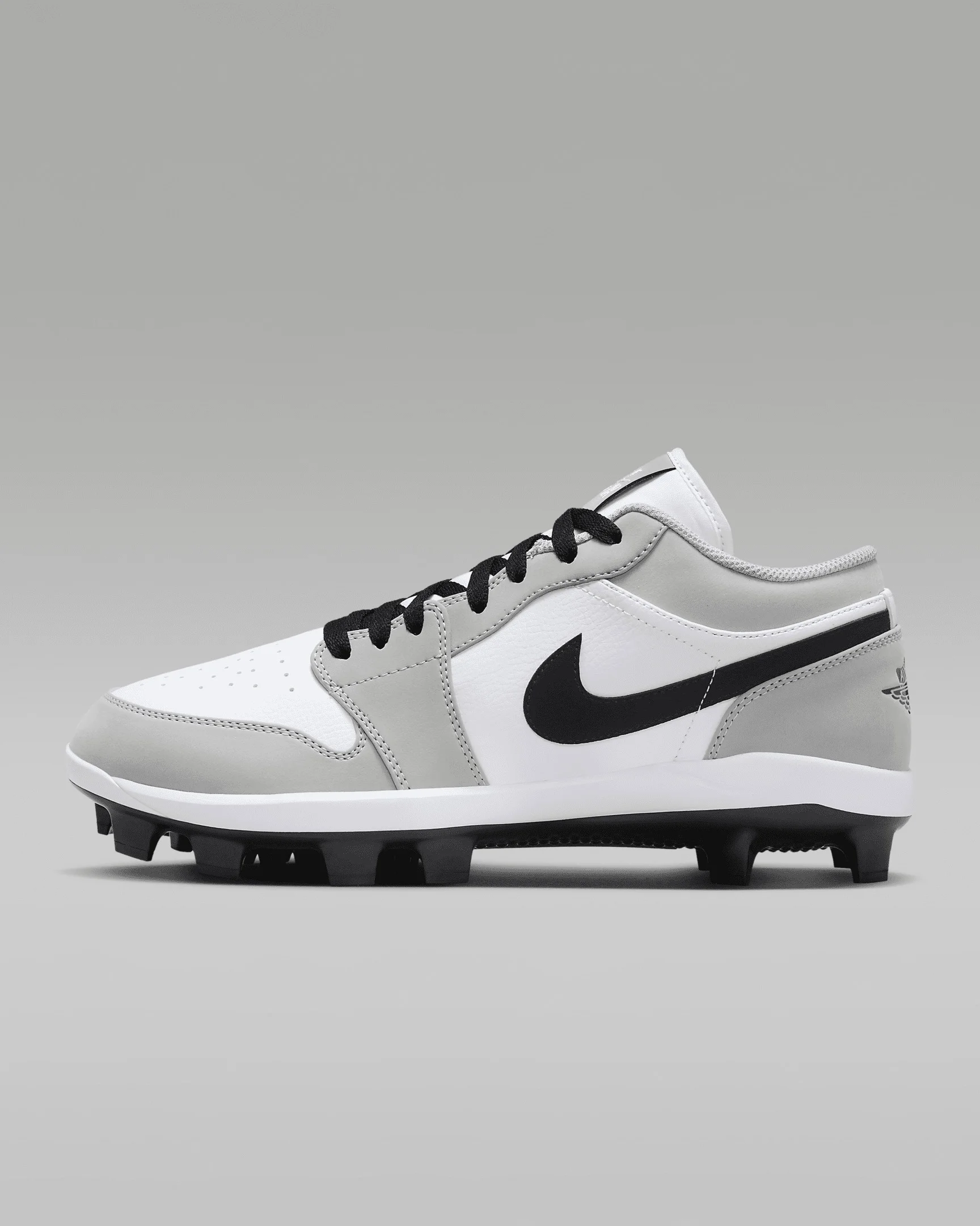 Bringing the iconic design of the Air Jordan 1 to the ballpark, the Jordan 1 Retro MCS Low has a molded outsole for traction that digs in. Its durable upper delivers a comfortable, supportive fit during games. Benefits - Synthetic leather upper provides durable comfort and support. - Foam midsole delivers lightweight cushioning around the bases. - Cleated TPU plate offers lightweight, durable traction. Product Details - Shown: Light Smoke Grey/White/Black - Style: CJ8524-012