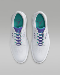 The best find ways to improve. Hit the range for another bucket of balls. Push putts across the shaggy carpet or scoot something soft across the hardwood. The Jordan ADG 5 went back in the lab and came back better. Now there’s more room in the forefoot and better traction all over the outsole. Plus, we added super comfy Formula 23 foam, all with a fresh look. Product Details - 2-year waterproof warranty - Cushioned insole - Shown: White/Emerald Rise/Grape Ice - Style: FQ6642-100