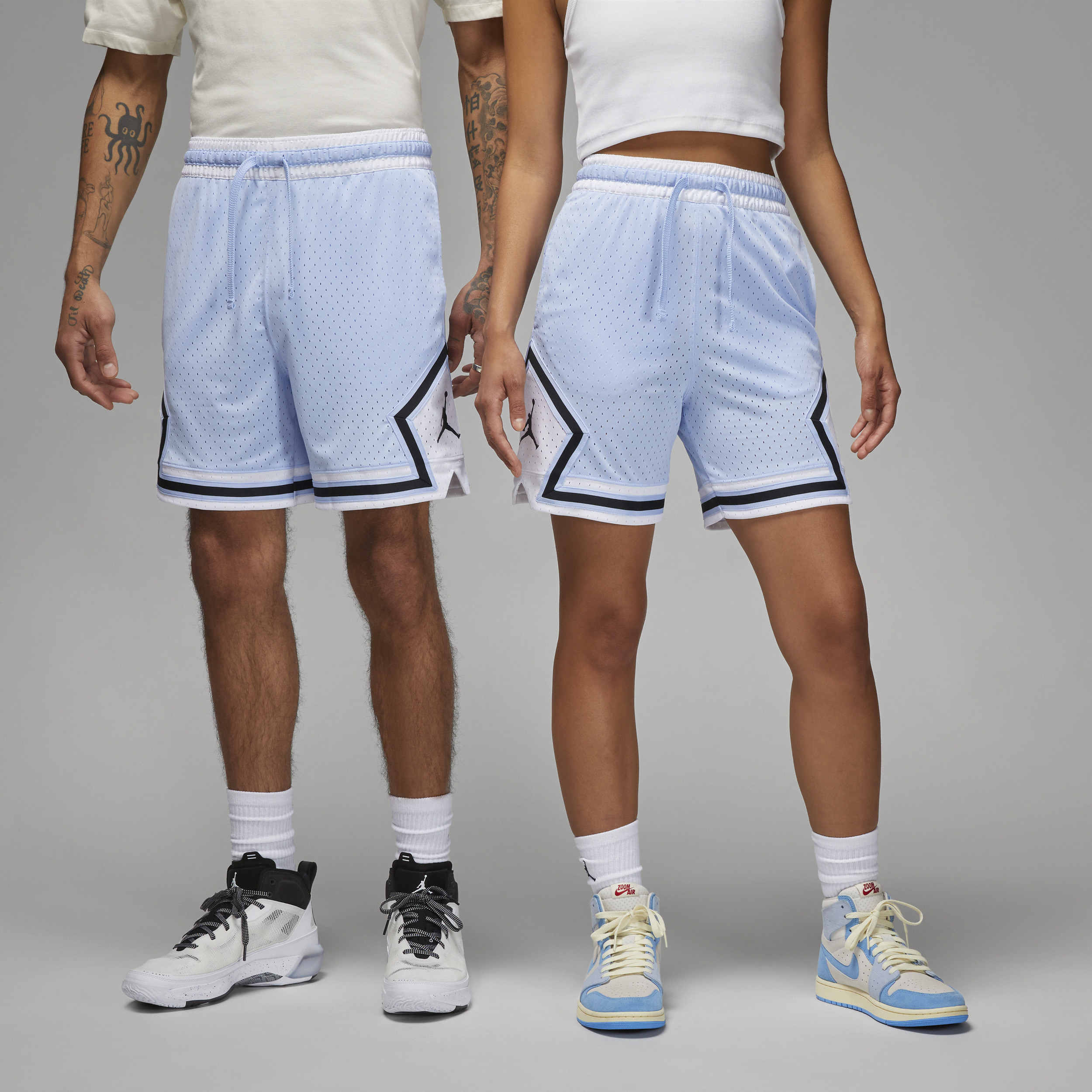 You ready to ball? Made from light, breathable mesh with sweat-wicking technology, these shorts set you up with versatile wearability for your whole day, on or off the court. Benefits:Nike Dri-FIT technology moves sweat away from your skin for quicker evaporation, helping you stay dry and comfortable. Mesh fabric is lightweight and breathable. Product Details:100% polyester. Elastic waistband with drawcord. Hand pockets. Striped knit tape. Machine wash. Imported. Style: DX1487; Color: Royal Tint/White/Black/Black; Size: 2XL; Gender: Male; Age Group: Adult | Jordan Dri-FIT Sport Diamond Shorts in Blue, Size: 2XL | DX1487-425